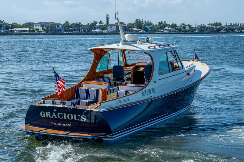 GRACIOUS is owned and maintained by a very experienced boater with high level of attention to detail. Hinckley Picnic boats owned by this client are known for being at the highest level of excellence, quality and have a well-deserved reputation for being near perfect. Every varnished surface is like glass, the gelcoat on the main deck is without a swirl and the hull has been polished and ceramic coated to perfection.