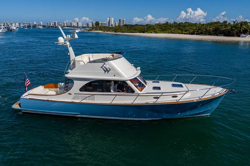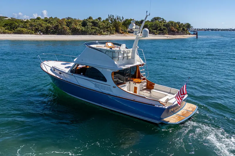 TWELVE BAR BLUES was built to be the ultimate entertainment platform for family and friends as the owners cruised the waters in the Palm Beach area. It was also thoughtfully outfitted to comfortably make trips to the Bahamas for an extended stay with the addition of a custom settee below. This T43FB is ready to fulfill your boating needs. Maintained with an open checkbook, she is as pristine as the day she left the factory and is a must-see for anyone looking to make a Hinckley Talaria their next boat. With her traditionally Downeast-inspired profile, TWELVE BAR BLUES is as classic as she is beautiful. Her sheer line is long and flowing, and her hull curves are perfectly proportioned, featuring a sensuous and eye-catching tumblehome.