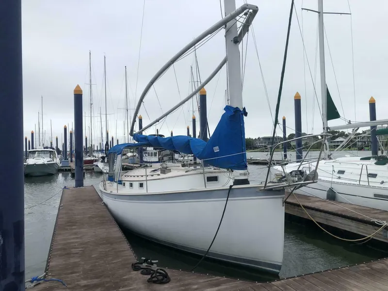 results in an enormous amount of living space, and a very comfortable cockpit with clean uncluttered decks. Salty Kat / Pirate is in good condition, but she is very simply outfitted.