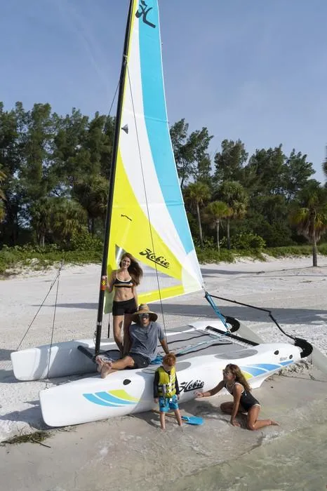 The Hobie Club Wave is an easy- to-sail, easy-to-rig speedster that will have you smiling. Fun for the family and exciting for the juniors while forgiving enough for the newly initiated, the Hobie Wave is the ideal must-go-sailing-now catamaran.