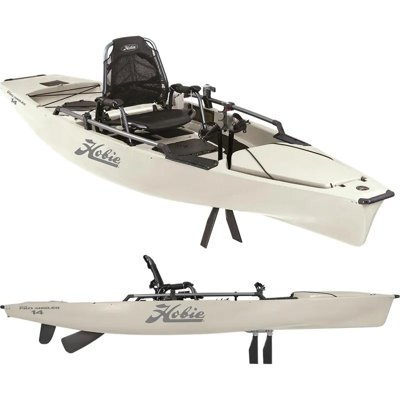New 2023 Hobie Pro Angler 14. Color Dune. Length 13.8. Height 20'. Beam/Width 34'.Now up to 25% off! 800-I'M READY. 1-800-467-3239.Buck's Island wants you on the water in your new Hobie Kayak enjoying the summer!!*****DEMO - We can get you on the water for a demo just about any day, but please call ahead to be sure.*****Whether you get out on the lakes and rivers of Northeast Alabama or travel the country fishing, our line up of fishing kayaks from Hobie and Jackson are some of the best on the market for all conditions. Neely Henry Lake, Weiss Lake, Logan Martin, Lay Lake and even Guntersville are all great bodies of water to kayak fish on in our area. We offer paddles, PFDs and accessories from brands like Bending Branches, YakAttack, NRS, Stohlquist and Hobie. We offer all electronics available on the market, like Humminbird, Lowrance, Garmin, Minn Kota and MotorGuide and batteries like Dakota Lithiums to power them. Contact us today about helping you get your kayak rigged the way you want it.