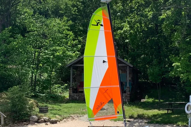 The Hobie Cat company designed the Wave especially for beginning sailors, families and youngsters. It's easy to set up, easy to sail, and easy to store. Even beginners and kids will find the boat easy to rig, sail and tack. Parents will appreciate the buoyancy, stability and safety. As well as remarkable quickness and agility, the Wave has great carrying capacity. The quick assembly-disassembly system allows for easy car-topping and storage. Safety features include a lightweight, non-skid deck surface and a safety view window in the sail. There is a non-conductive Comptip upper mast section. Impact resistant roto-molded hulls give the Hobie Wave incredible durability. There are anodized aluminum spars and a reinforced Dacron sail and handy storage bag. Other features include: a one-piece vinyl trampoline with heat-welded seams for strength and durability; Hobie patented kick-up rudders, allowing easy beaching; and molded-in padded seat cushions for added comfort.