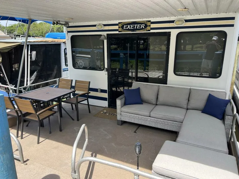 1997 Horizon houseboat "Exeter" size is 46' X 14'. This boat went under complete remodel inside in 2024. The main salon includes the helm and Captain's chair, futon and flat screen TV, dining table, bar, and 4 chairs plus the galley and storage closet. The boat has two private staterooms with full size beds. With the full size futon in the main salon this boat comfortably sleeps six people. The boat has one full bath with large walk-in shower. This boat is equipped with Heat Pump household central air conditioning/heat. The front deck features a table and four chairs and couch. The back deck has space for stowing kayaks and water toys. A ladder on the back deck allows access to the top deck. The top deck has loungers for sunbathing. This boat is available to Airbnb/VRBO at a local marina here in Deland on the St Johns River. Nestled on the St. Johns River in Deland, Florida amid alligators, bears, manatees, and beautiful birds, etc. --SHOWN BY APPOINTMENT--Please Call/Text.