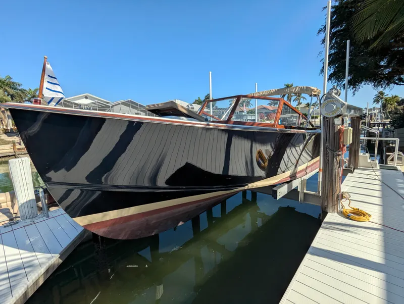 A 1951 Huckins Fairform Flyer is a classic, high-performance wooden boat known for its sleek design, exceptional speed, and handcrafted quality, featuring a distinctive "Fairform" hull with a narrow beam and deep V for smooth riding, typically powered by powerful twin V8 engines, and often considered a prized collector's item among boating enthusiasts.