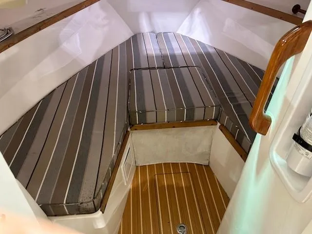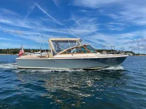 "Sweet Pea" is a classic example of a Hunt Harrier 25. The perfect pocket day cruiser. With striking looks and a proven hull design, the Harrier 25 is perfectly suited for coastal day boating and weekend overnighting. Equipped with all of the most popular features including a bow thruster, teak accents and plenty of seating. Powered by a single 380HP Freshwater Cooled Volvo Penta engine. Some of the other features of this boat include a Bimini top with a four-sided weather enclosure, Garmin 7612XSV GPS fish finder, ICOM M324 VHF radio, custom covers for the dash, helm side console and aft bench seat, porcelain head with electric flush and holding tank and much more. This one will not last.