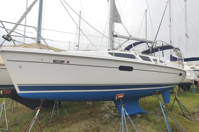 Hunter's hallmark of innovation coupled with over 25 years of experience results in a safe, easy-to-sail, and comfortable boat, making the Hunter 326 the most advanced mid-size cruiser on the market today. A creative layout boasts two private staterooms with solid privacy bulkheads, not just curtains. A spacious, well-designed salon abounds with plenty of seating and storage. The teak-trimmed galley is complete right down to the dishware and offers a stove and microwave oven, along with an insulated icebox or optional refrigerator / freezer. Aft is a large head complemented with a Corian-topped vanity with storage and full shower. Topside, there's a wealth of innovations and features normally found on much larger boats. The rig, for instance, is a powerful B&R back-stay-less rig that allows easier sail handling with the large roach main and small jib. Hunter has even reduced the weight aloft by utilizing strategically placed mast struts and smaller mast sections. This ensures less pitching and rolling and a stronger rig. Hunter has also included its signature stainless steel arch that keeps the boom up and clear of the crew as well as keeping the cockpit clear of the mainsheet and traveler. The arch also makes a great attachment for the optional bimini and allows for sturdy handholds moving around the large cockpit. Even the console is custom which allows for electronics, drink holders, storage and a pair of flip-up tables.