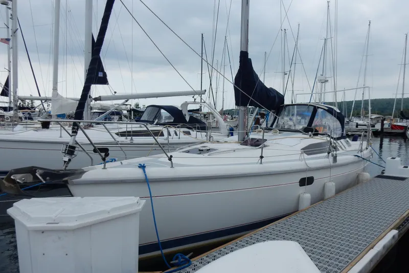 Price Just Reduced to $49,000. Designed with flexibility in mind, the Hunter 376 lets you live life to the fullest - whether sprinting under full sail, entertaining family and friends, or enjoying that long weekend or vacation cruising. The 376 is outfitted with a fractional rig featuring a full-roach, fully-battened mainsail and all lines leading aft. The cockpit is large, with an integrated wheel console, hinged helm seat and a walk-through transom with swim platform. The 376's roomy and bright interior boasts wraparound windshield; two staterooms, L-shaped galley; and a marine head with vanity and stall shower.