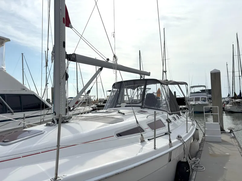 The new Hunter 38 replaces the popular 386, the last of which rolled out of the Florida plant May 27, 2004 following a highly successful seven year run. Hunter's famed designer and racer Glenn Henderson returned to the drawing board with one focus in mind. "Our goal was to design a boat that was an exceptionally comfortable cruiser, yet offered outstanding performance and easy handling," said Henderson. "Our new 38 has met -- and exceeds -- expectations." The 38 is Hunter's largest mid-size cruiser in its fleet. While Hunter is quick to acknowledge that the market is competitive in this class, the company believes it is a powerful niche and is confident its new boat will make waves due to its many innovations. In addition, the appearance of the boat itself offers an optional departure featuring red stripes, a red Hunter logo and linen bimini top.