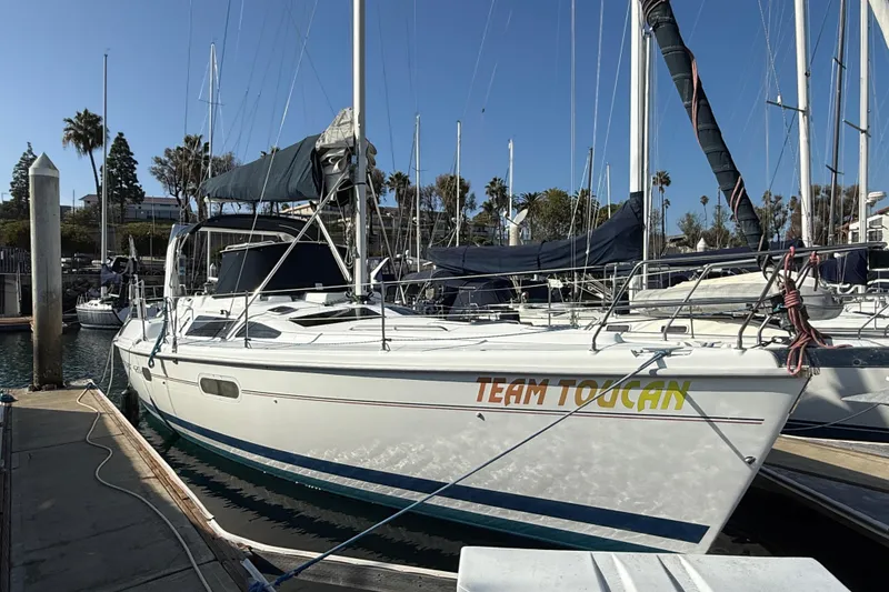 The 1999 Hunter Passage 420 is a sleek and inviting cruising sailboat, designed for comfort and ease on extended voyages. Its graceful hull lines and wide beam create a stable ride, while the large cockpit offers ample seating for relaxation or entertaining under sail. Team Toucan is powered by a reliable 50hp Yanmar diesel engine with unknown hours. Below deck, the cabin is warm and welcoming, with rich wood finishes, abundant natural light from deck hatches, and a thoughtfully arranged layout that maximizes living space. Two private staterooms, each with en-suite heads, provide privacy and comfort, while the fully equipped galley makes preparing meals at sea effortless. Known for its reliable performance and user-friendly rigging, Team Tucan blends modern sailing technology with classic cruising luxury.
