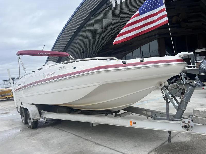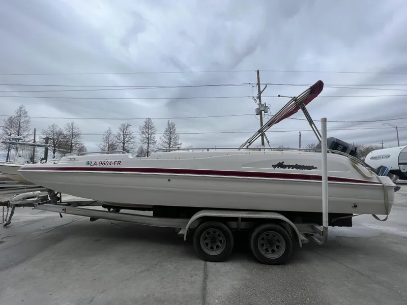 2005 Hurricane SunDeck 237 is a luxurious deckboat that offers styling, amenities, and performance to please the most discriminating buyer. Key features include a large entertainment center with sink, cup holders, 17-gallon fresh water system, and storage; an optional bow sunlounge cushion; an enclosed head that offers additional storage space and a convenient place to change clothes; plus a standard stern bumper holder bracket.