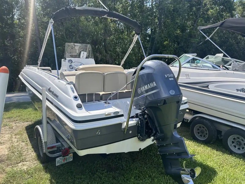 2016 Hurricane CC 19 OB - The Deck Boat/Center Console HybridThe 2016 Hurricane CC 19 OB offers the perfect blend of family-friendly deck boat spaciousness with the fish-focused features of a center console. Its wide hull design provides exceptional stability and a smooth, dry ride, while the outboard power offers excellent maneuverability and shallow water capability. With versatile seating, ample storage, and dedicated fishing amenities, this boat is a true multi-purpose vessel, ideal for fishing trips, watersports, and relaxing cruises with family and friends.Specifications:Length Overall: 18 ft 10 inBeam: 8 ft 5 inDry Weight: 2,720 lbsFuel Capacity: 39 gallonsMaximum Horsepower: 200 hpPassenger Capacity: 10 personsDraft: 13 in (drive up)Key Features:Hybrid Design: Combines a wide, spacious deck boat hull with a functional center console layout, providing the best of both worlds.Versatile Seating: Features wraparound bow seating with backrests and removable cushions that can convert the area into a large casting platform or sun pad.Large Livewell: Includes a 40-gallon stern livewell to keep your bait fresh and lively.Ample Storage: Generous storage options are found under the bow seating and in the console.Onboard Head (Optional): An optional changing room in the center console can be equipped with a port potty, offering added convenience on longer outings.Cooler Helm Seat: The helm features a flip-flop cooler seat that doubles as comfortable seating and a convenient cooler.Built for Watersports: A standard or optional ski tow pylon is available, making it ready for tubing and waterskiing.Easy Water Access: Boarding ladders at both the bow and stern, along with a walk-through transom, provide easy access for swimmers.One of the only true Center Console Fishing Deck Boats. The 19CC has plenty of seating and space for the family and also plenty of features that make it a good fishing boat as well. Includes a Boat Cover, GPS/FF, Ski Tow Pylon, SS Prop, Full Rear Row Seating, Livewell, & Aluminum Single Axle Trailer.