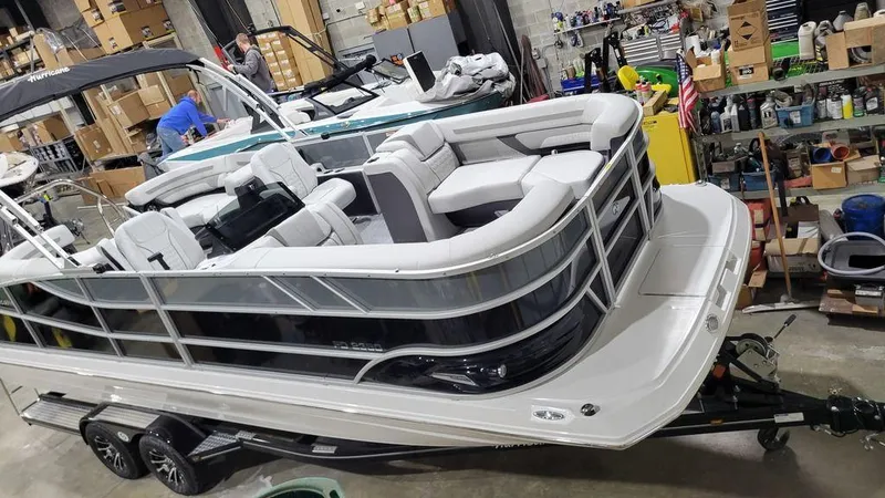 Versatile Design: The FunDeck 2360 SBC OB features a spacious layout that accommodates families and friends, making it perfect for social gatherings on the water. 2. Powerful Performance: Equipped with an outboard motor, this boat delivers impressive speed and agility, allowing for smooth cruising and quick acceleration. 3. Ample Storage: The boat includes plenty of storage compartments, ensuring that all your gear and essentials can be stowed away neatly and securely. 4. Comfortable Seating: The seating arrangement offers plush, cushioned options that provide comfort during long outings, with options for both lounging and dining. 5. Family-Friendly Features: Safety and convenience are prioritized with features like non-slip surfaces, swim platforms, and easy access to water, making it ideal for families. 6. Customizable Options: Buyers have the ability to choose various color schemes and accessories, allowing for a personalized touch that suits individual preferences. 7. Durable Build: Constructed with high-quality materials, the FunDeck is designed to withstand the rigors of marine environments, ensuring longevity and reliability.
