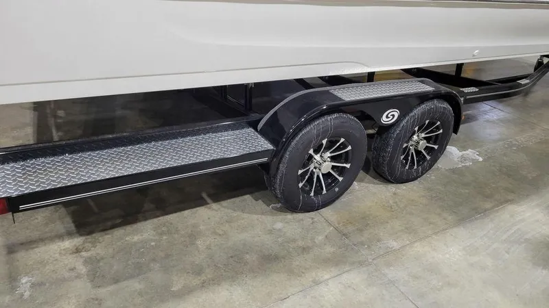 END OF YEAR CLEARANCE PRICING! Yamaha 200hp, Power bimini top w/extension, Docking Lights, ski tow, Boat Cover, dual batteries with trays, sst pull up Cleats, deluxe Mat Flooring Snap-in Panama Ice Gray, SS Cupholders and custom tandem trailer with brakes