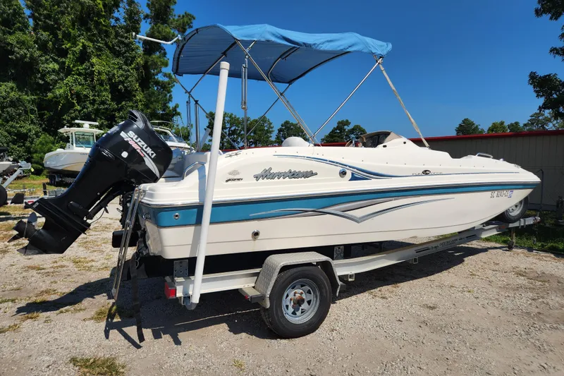 The 2007 Hurricane 194 GS is a versatile deck boat with a fiberglass hull and a shallow-draft design, offering features like a Bimini top, bow and stern ladders, in-floor storage, and space for various water activities such as fishing, wakeboarding, and cruising. It's known for its large seating capacity, ample storage, and excellent handling, making it a popular choice for families. TRAILER INCLUDED. POWERFUL 140 HP SUZUKI OUTBOARD!! ONLY 195 HOURS!