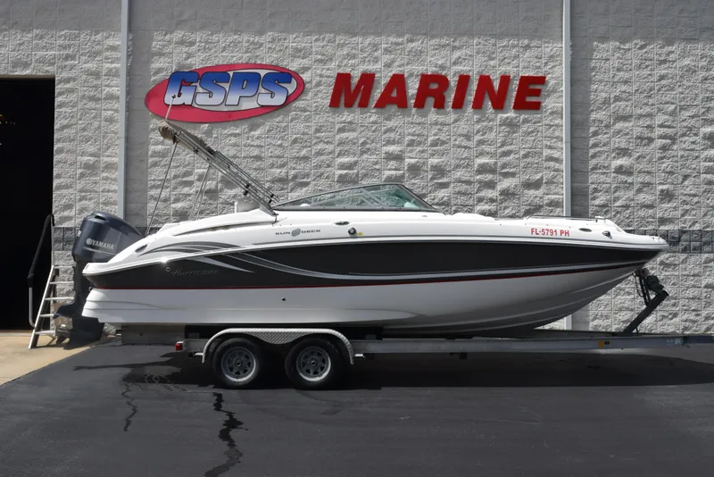 2012 Hurricane 2400SD with a four stroke Yamaha F250 sitting on a tandem axle aluminum Magic Tilt trailer. This is a owner boat with only 410 hours on the engine. It comes equipped with a full boat cover, bimini top, stereo, fresh water with a sink, and plenty more. The Hurricane Sun Deck 2400 is an absolute tank that has amazing performance with the V6 Yamaha F250! It provides plenty of room for friends and family and is in turn key condition. Please call or text Jimbo Moxley with GSPS Marine for all inquiries.