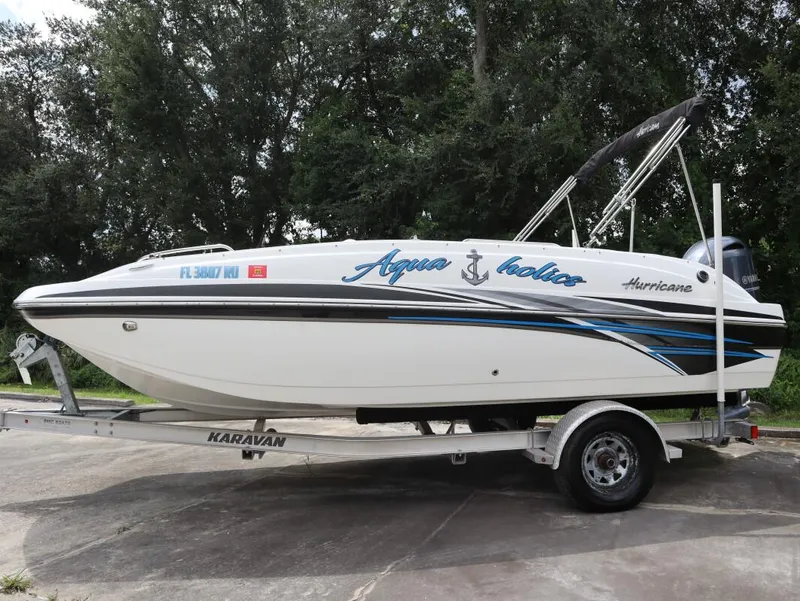 2019 Hurricane Boats SS188, 2019 Hurricane SS188 - 168 HOURS The 2019 Hurricane SS188 (SunDeck Sport) is a pre-owned deck boat with 168 hours of use, offered in clean, well-maintained condition. Known for its versatility, performance, and family-friendly design, the SS188 is perfect for boaters seeking a reliable, multi-functional vessel that's ideal for cruising, watersports, and fishing. Whether you're spending a fun day on the lake with family or engaging in water-based activities, this boat is ready to deliver an unforgettable experience. Key Features: • Reliable Performance: Powered by a dependable outboard engine (typically 115-150HP), the Hurricane SS188 offers smooth, responsive handling, whether you're cruising leisurely or towing for watersports. With 168 hours of well-maintained use, this engine still has plenty of life for many more adventures on the water. • Spacious Deck Layout: The SS188 is designed with a spacious, open deck that comfortably seats up to 10 passengers, making it perfect for family outings or socializing with friends. The wide beam ensures plenty of room for relaxing, sunbathing, or prepping for watersports. • Versatile Bow and Stern Seating: The bow and stern offer flexible, cushioned seating that can be used for lounging or as casting platforms when fishing. The wraparound rear seating provides a comfortable social space, while the bow seating is perfect for sunbathing or enjoying the breeze. • Integrated Swim Platform: The extended swim platform at the rear comes with a telescopic ladder, providing easy access to the water for swimming, skiing, or boarding after watersports activities. This platform is ideal for lounging or prepping for water activities. • Watersports Ready: With ample power from the outboard engine and a built-in tow point, the SS188 is perfectly equipped for tubing, wakeboarding, and skiing. Its stable hull design ensures smooth towing and a reliable ride, even when the boat is fully loaded. • Ample Storage: The boat offers plenty of storage compartments, including under-seat storage, an in-floor ski locker, and dedicated spaces for gear and personal items. Whether you're packing fishing gear, watersports equipment, or picnic supplies, there's space for everything you need. • Bimini Top: A Bimini top provides shade and sun protection during hot summer days, ensuring that you and your passengers stay cool and comfortable while cruising or anchored. • Clean, Well-Maintained Condition: With 168 hours on the engine and meticulous care, this 2019 Hurricane SS188 is in clean condition, offering peace of mind to its next owner. The boat has been well-maintained, and its exterior and interior are free from significant wear or damage. Specifications: • Length: 18 feet 10 inches (5.74 meters) • Beam: 8 feet 5 inches (2.57 meters) • Weight: 2,600 lbs (1,179 kg) • Fuel Capacity: 36 gallons (136 liters) • Passenger Capacity: 10 ...