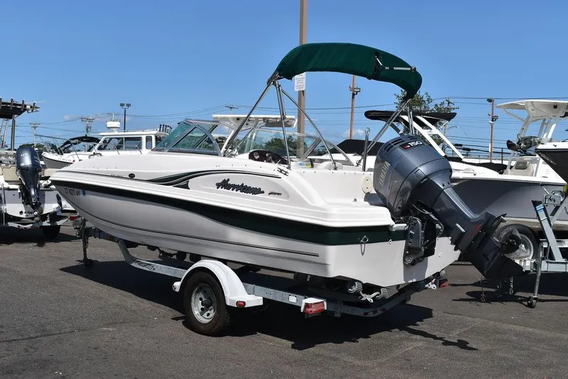 Run in fresh water, great condition cosmetically and mechanically. 2003 Hurricane Sun Deck 187 with Yamaha 150hp outboard, 2003 Ez Loader trailer. Bow and cockpit covers, Removable ski tow bar, Stereo, Bow and transom boarding ladder, Bimini top w/ boot, Floor ski locker, Swivel captain's chair w/ flip-up bolster, Under cushion storage, removable cockpit snack table and a fresh coat of white bottom paint. Room for all, friends and family for a day out on the water. Please contact us with any questions or concerns by email or phone and ask for Mark or Karl. Thank you, Diamond Marine