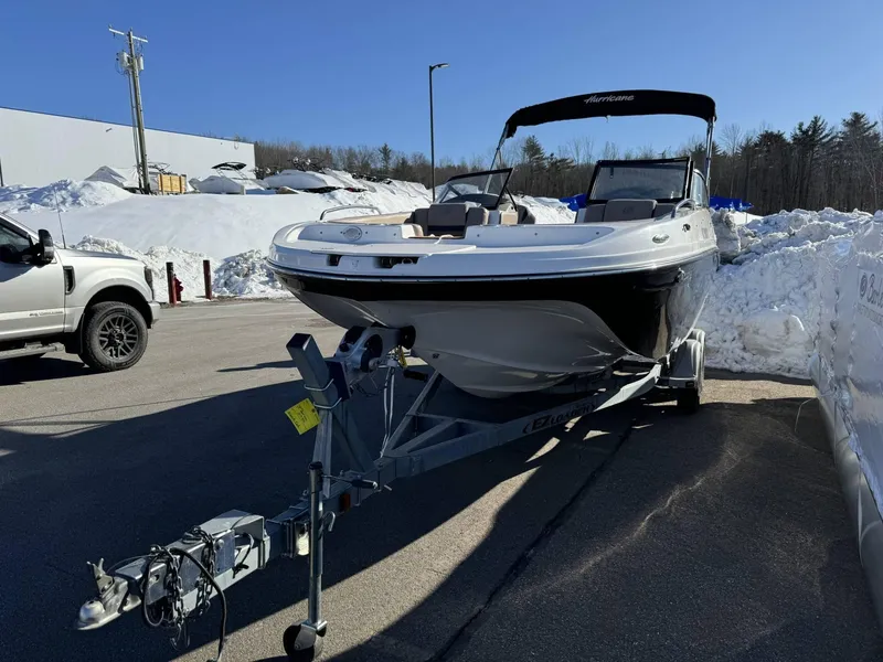 This Beautiful 2018 Hurricane 217SD is powered by a 200hp Yamaha Out board engine with only 216 hours! This boat is in fantastic shape, very well cared for and comes equipped with stainless propeller, nice EZ-loader trailer, Bimini top with matching canvas, Polk Bluetooth stereo, Simard chart plotter, bow filler cushions, and plenty of seating for the entire family! This boat can be seen at our Laconia location.