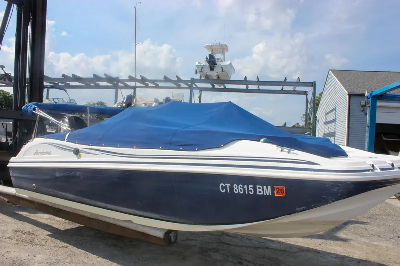 The Hurricane SunDeck Sport SS 188 OB is a versatile, family-friendly deck boat built for fishing, cruising, watersports, and relaxing at sunset. Powered by a Mercury 150 XL with low hours, it's been summer rack-stored, has never been bottom painted, and comes with a road trailer for easy transport. Comfortable seating, smart storage, and easy handling make this boat a ready-to-go option for all types of on-water fun.