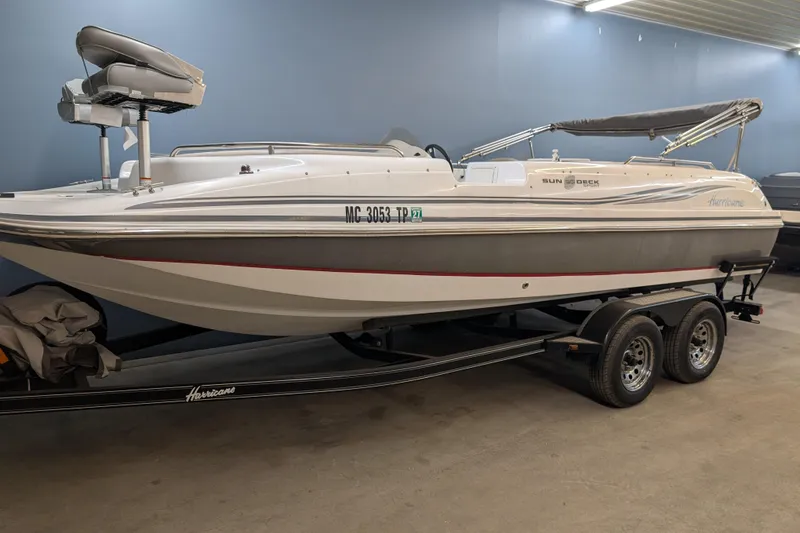 2013 Hurricane SS 201 I/O deck boat with MerCruiser 4.3L MPI with 315 Hr. Trailermaster tandem axle trailer with swing tongue full snap cover. Also has 2 bass style fishing seats