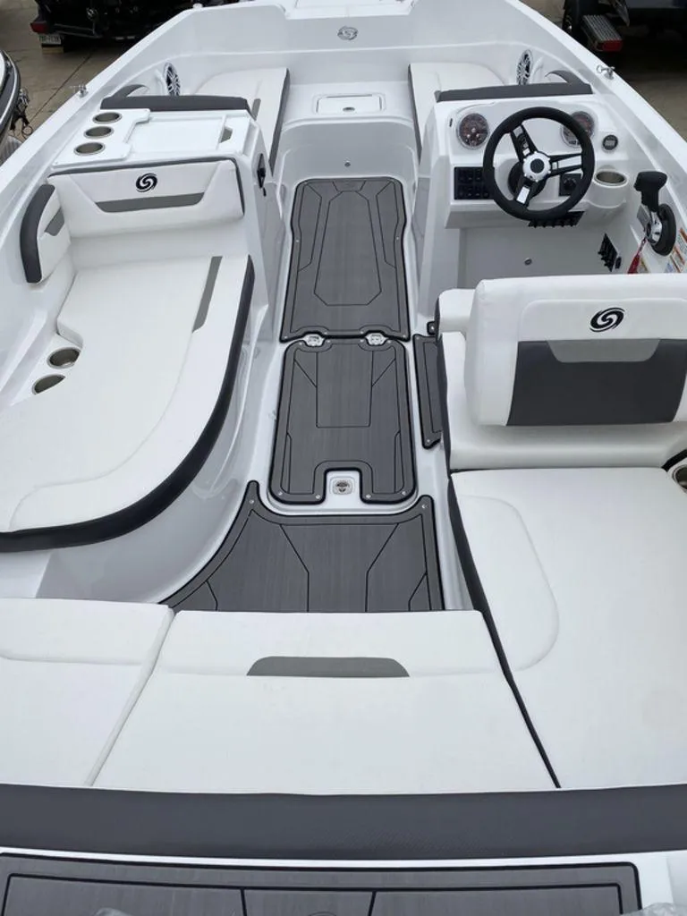 Confidence, versatility and easy maneuverability come standard. A sporty windscreen compliments an open floor plan, lounge seating and stern sun pad for more fun for more people.
