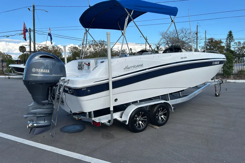 2018 Hurricane SS218 coastal edition deck boat powered with a 150hp Yamaha four stroke outboard with only 119 hours. Boat has fresh water rinse down, radio, hummingbird navigation/depth finder, front and rear swim ladders, Bimini top and full boat cover along with the Bimini boot. Also comes with a super nice 2018 aluminum tandem axle magic tilt trailer that was just completely gone through with new hubs, wheels, tires, lights, winch strap and carpet. Boat runs very good and is as clean as it gets. Trailer is ready to go and ready to be pulled anywhere. Come check it out today!
