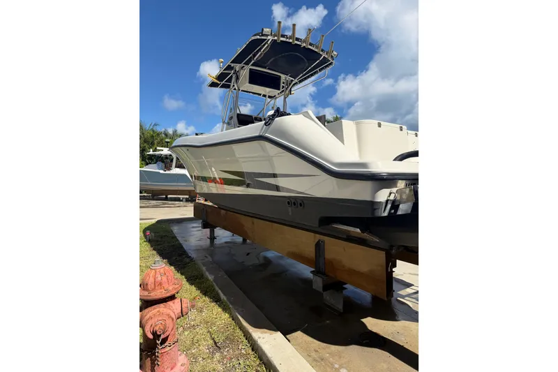 This 2000 Hydra-Sport 25 is the Vector series, which is known for it's Kevlar reinforced hull & ride offshore. The boat has Twin Yamaha 225hp, 4 stroke( one motor had a new power head and the other new lower unit). At the helm there is a Garmin screen, fusion VHF radio, Lenco trim tabs. With a few upgrades/updates including new helm seastar, steering cylinder starboard seastar, one motor had new power head and other new lower unit and new JL audio speakers.