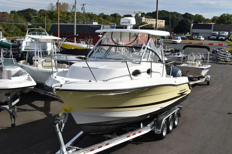 You are viewing for sale by Diamond Marine of Connecticut a fully loaded, beautiful condition, strong running, 2003 Hydra-Sports 2800 WA Vector boat, motors and trailer package. This offshore overnighter walkaround fishing machine is powered by twin Yamaha 250hp four stroke outboards with 1085 hours of well maintained use, stainless steel props, Yamaha multi function gauges. Complete package includes a brand new Venture I-Beam aluminum trailer. This offshore overnight walk around comes fully loaded and features include a Hardtop w/ full enclosure, 5 rod rocket launcher arch on hardtop, spreader lights, Two flush mounted Garmin GPS/Fishfinder, 942XS and 94SV, Garmin Radar, VHF radio, Clarion stereo w/ helm remote, Air conditioning/heat, Remote spotlight, Walk thru transom, Removable dive ladder, Windlass anchor, Shore power, Transom freshwater shower, Transom livewell, Drop down transom bench seat, Raw water washdown, Lock-in toe rails, Under gunnel rod storage, Two floor fish boxes, Cockpit freshwater sink, Tackle storage, Twin swivel captain chairs, Lenco trim tabs w/ indicators, Cushione v-berth sleeper w/ filler cushion, removeable cabin table, Midship sleeper, Galley w/ Microwave, sink, fridge and storage, Stand-up head w/ Vacu-flush toilet w/ tank level indicator, overboard discharge, sink and mirror, Hot water heater, and more. Boat has gone through our service department and is in tip top shape and ready for it's next owner. Seatrial is available once boat is on contract, and before payment in full. Local trades are welcome. Financing is available with good credit. We are Diamond Marine of Connecticut, in business for over 40 years. Please contact with any questions or concerns by email or phone