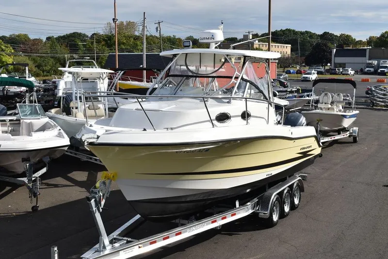 Recent trade into Diamond Marine, 2003 Hydra-Sports 2800 WA Vector, run locally in Southern CT, Long Island Sound. meticulously maintained. Service records available. We pulled lower units on outboards and inspected for exhaust corrosion and found none. We are pricing boat with brand new trailer, but can be deducted from price if not needed. This one needs nothing, check out the pictures, recently taken by Diamond Marine. Please contact us with any questions by email or phone and ask for Mark or Karl.
