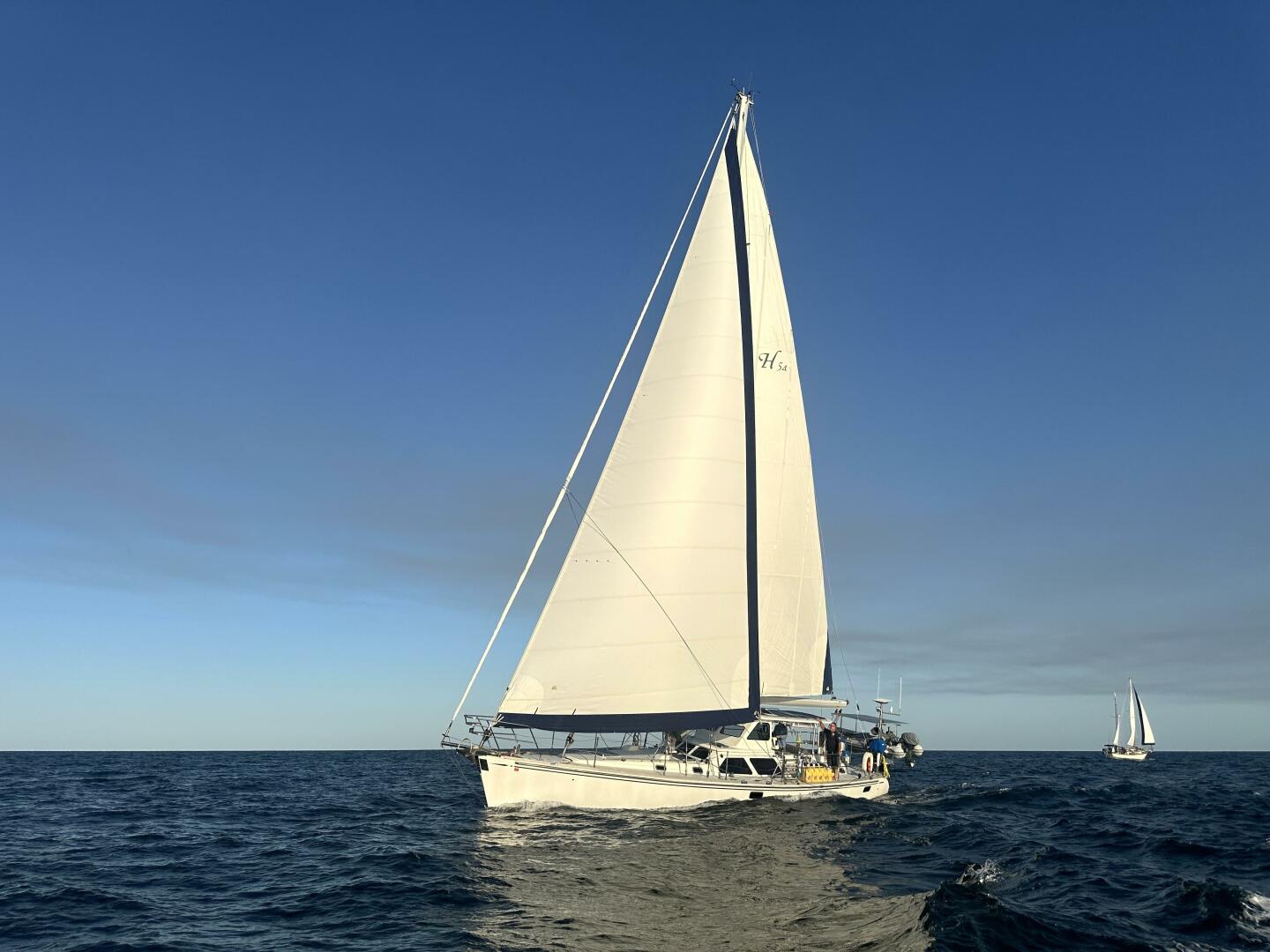 The Hylas 54 is a large couples cruiser, designed to be circumnavigation capable, crewed short handed, but also with the space for guests or two couples full-time cruising. Three generous cabins, a large raised saloon, passageway galley, full navigation station, cutter-rig, and center-cockpit design are only some of the Hylas 54's attributes.