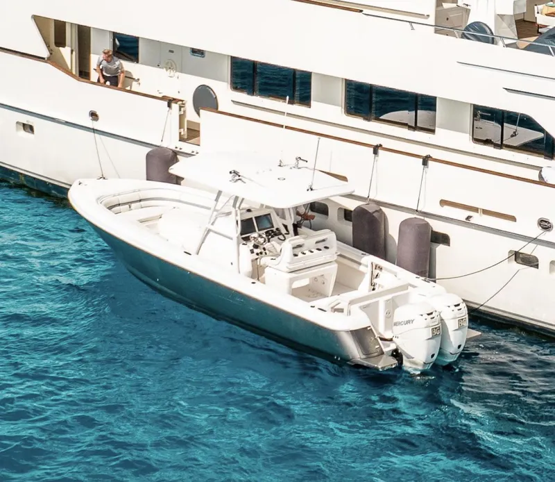 Re-powered with twin 2019 Mercury 350 Verado engines and re-wired in 2024. Crew maintained on a 154' Feadship.