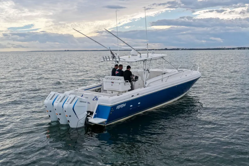 In the world of high-performance center console boats, few models capture the essence of speed, luxury, and versatility quite like the 2003 Intrepid 377 Walkaround. This 37-foot masterpiece from Intrepid Powerboats stands as a testament to innovative marine engineering, blending the rugged capabilities of a serious offshore fishing vessel with the refined comforts of a weekend cruiser. Measuring 37 feet in overall length with a generous 11-foot-6-inch beam, the 377 Walkaround offers a stable, spacious platform that's equally at home slicing through choppy Atlantic waves or anchoring in a serene Florida cove. Its vacuum-bagged, transverse-stepped hull, constructed from high-strength fiberglass reinforced with Kevlar in key areas, provides exceptional durability and efficiency. Weighing in at around 13,500 pounds dry, this boat is built to perform without sacrificing seaworthiness, boasting a 22.5-degree transom deadrise that ensures a smooth ride even in demanding conditions.