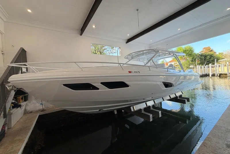 This 41 Valor captures everything you need on the water, with its spectacular ride, large hardtop over the seating area, and pristine, spacious cabin down below, it is sure to bring the pleasure to your next boating adventure!