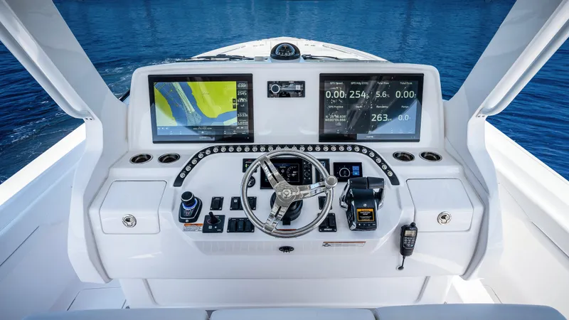 Performance: Powered by twin outboard engines, it delivers excellent speed and fuel efficiency, making it ideal for offshore fishing and fast cruising.