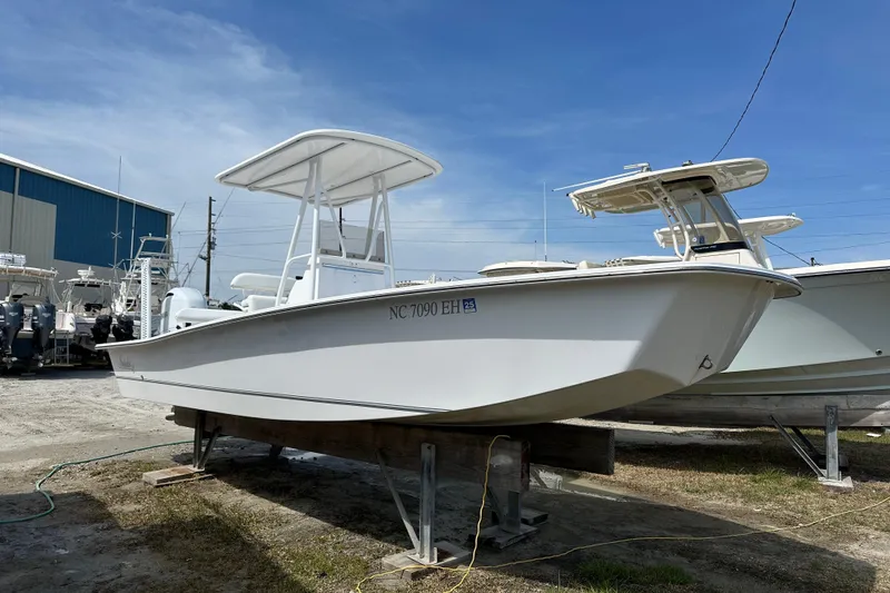 This 2018 Intruder 23' is the perfect skiff for inshore fishing and nearshore exploring. She has a full cushion package, a custom JL Audio system, an 8' Power Pole, and a Yamaha F150 on an Atlas Jackplate w/ 652 hours. She is custom built in Carteret County, NC with hand laid fiberglass and a composite structure. This boat was kept on a lift and spent the winter in our dry-stack building. There is no trailer but we could order a new RoadKing Trailer for you.
