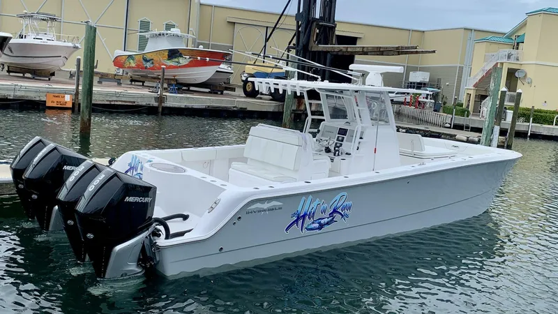 The spacious cockpit is versatile and perfect for tournament fishing, family outings, or cruising. With quad 300 hp outboards, substantial fuel capacity, and a purposeful layout, this vessel is ready for offshore adventure.