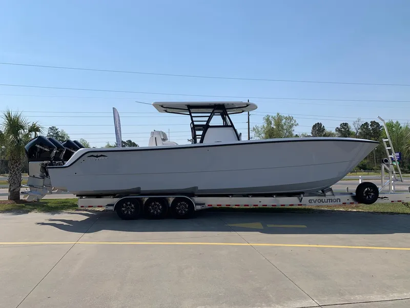 2024 Invincible 35' Catamaran with Quad Mercury 300 Verado V8 motors. With a hull custom designed by Morelli and Melvin, the world leading architects in multi hull design, this cat runs like no other with advanced sea-keeping ability. Invincible created a boat that will take on any sea condition no matter how rough, while still being able to maneuver turns at high speed, something that other cat boats simply can not do. ONE RIDE IS ALL IT TAKES!! For more information and pricing, call 910-755-7900 or 919-585-7900.