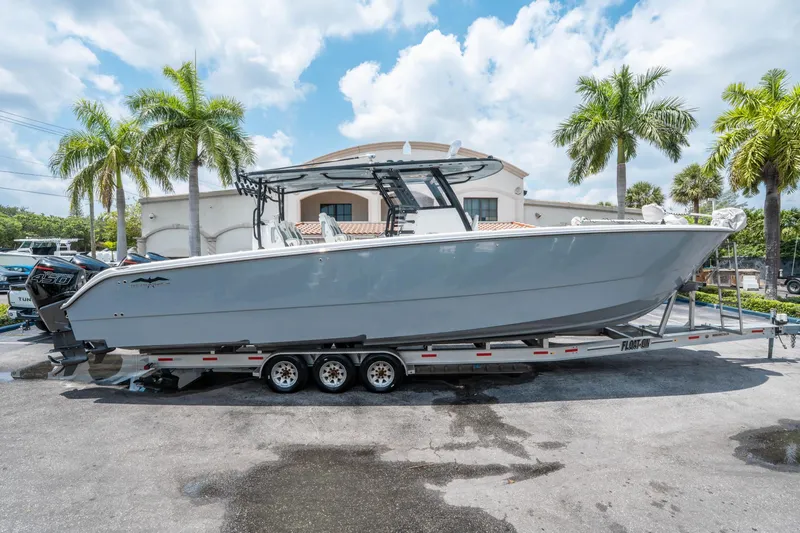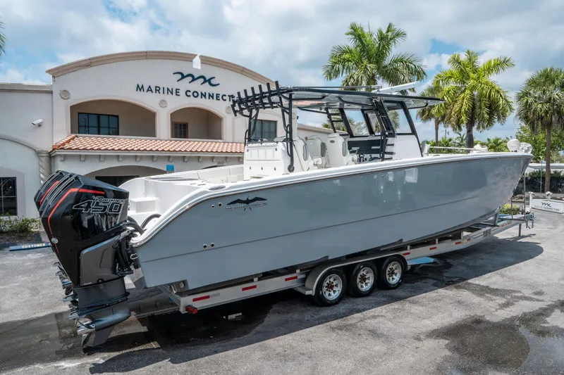 If you're looking for a center console that refuses to compromise-on speed, fishability, or comfort-this 2022 Invincible 40 Catamaran delivers in every category. Powered by quad Mercury Racing 450R outboards with just 324 hours, this boat rockets to a blistering 75 mph with ease, offering the kind of performance only a stepped-hull power catamaran can provide. Built for serious anglers and thrill-seekers alike, this 40 Cat combines high-speed capability with unmatched offshore stability.