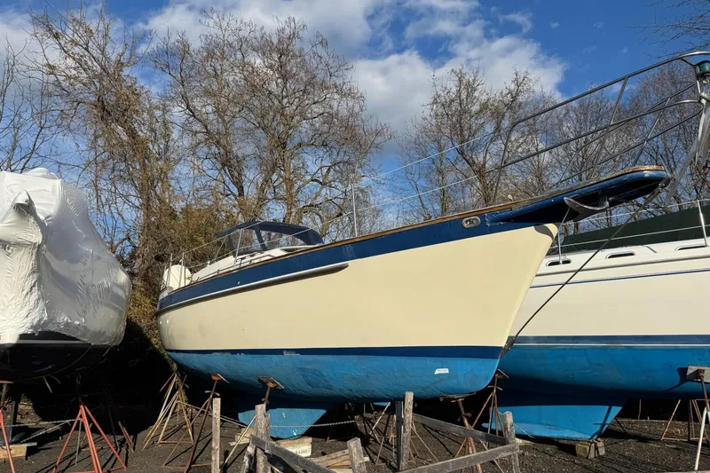 Double V-berth forward. Forward head with sink and marine toilet. Aft is the main salon, with L-shaped settee/dinette to starboard and settee to port. Galley is to port with H&C pressure water stove, oven & icebox. Nav station is to starboard. The master stateroom has a island queen berth with ensuite shower/head, and a separate vanity. There are hanging lockers to starboard, and multiple drawer storage beneath the berth. Main cabin table available