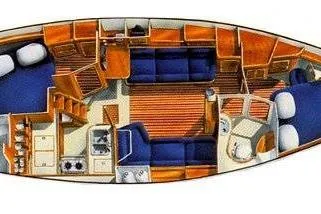 Mast head rig with Cutter rig adapts to a wide range of conditions with minimum effort. Running rigging led aft to cockpit.