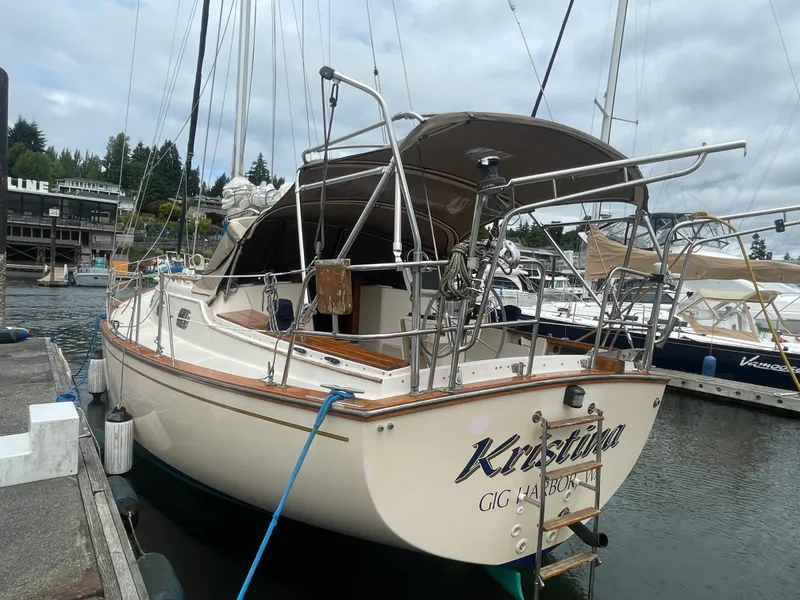 From the spacious cockpit with newer dodger and full canvas enclosure enter into comfortable salon. There is a convertible settee on port and L-shaped dinette on starboard side. Large stow-away table. Master stateroom forward offers Pullman berth on starboard, ample storage on port and private head with shower. Guest cabin and head is aft.