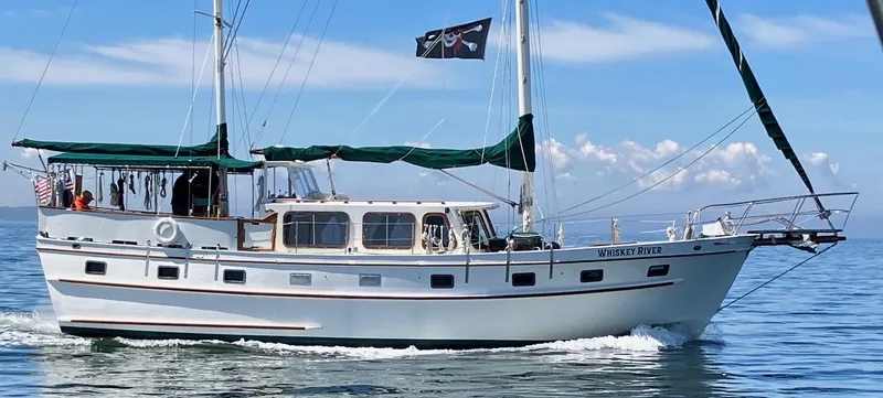 Classic styling of this Floyd Ayers' designed Masthead Ketch is the perfect transition from a sailboat to a trawler. This comfortable classic is ready for new adventures! The vessel's teak deck was removed and a new core deck installed and transom rebuilt during major refit in 2017. Current owners have cruised the Florida coast and the ICW comfortably on Whiskey River. Her heritage, style, spaciousness, and comfort are unsurpassed.