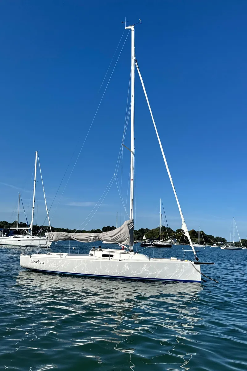 • Tapered, fractional, keel-stepped Sparcraft aluminum mast with single sweptback spreaders attached with stainless thru-bar. Mast includes halyard sheaves, fittings for boom and boom vang attachments, masthead crane, shroud termination points, lazy jack attachment points, and a steaming light. Spars are anodized and powder-coated white.