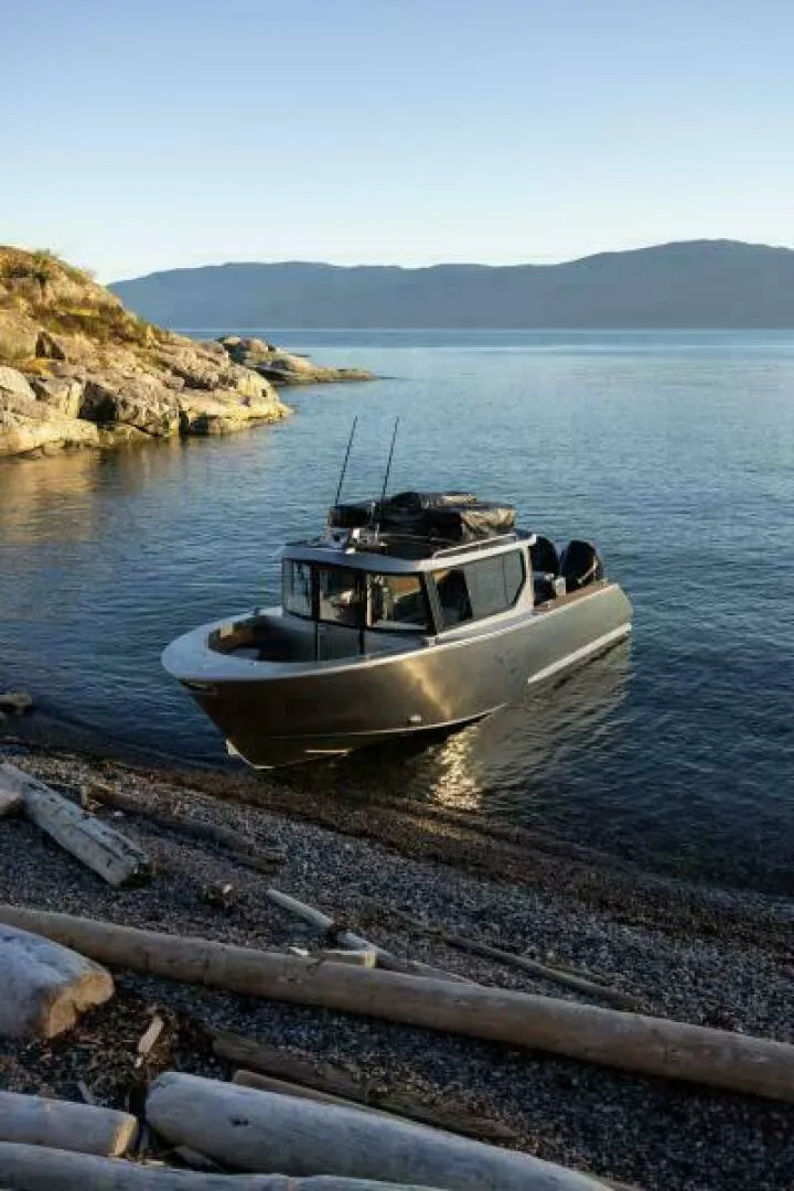 Proudly built on the Sunshine Coast in Gibsons, British Columbia, the Defender 22 - delivers big performance in a 22-foot package. Featuring options for a open bow or a fully enclosed bow with a insulated cabin, this innovative design is ideal for all-weather adventures-whether you're fishing, camping, commuting, or exploring.