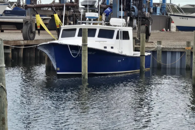 classic downeast lobster style sportfish boat used for decades by experienced anglers everywhere. she looks and runs well, fish rigged with electronics and exterior led lights, life raft, hug cockpit, blue hull, on deck ice chest/fish hold, radar, chart plotters auto pilot, vhf radio etc...cabin will sleep 2 and has a toilet.