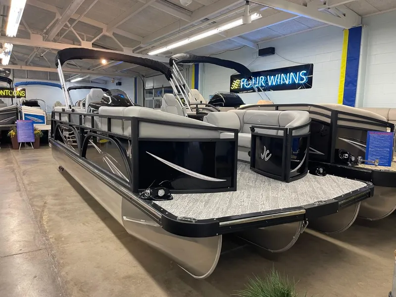 New in stock JC Spirit 24 TT DSL Sport. Includes bow lounger with tip out trash & stern loungers with storage, loungers with storage, highback recliner with bolster fuel/water filter, digital depth gauge, premium 7.7 speakers (4), companion seat next to the helm seat, Sunbrella mooring cover, telescoping 4 step ladder and dual batteries.