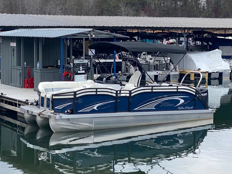 Excellent condition 2023 NepToon Sport 21TT with new full 5-year warranty Suzuki 150 and power-assist hydraulic steering, 50mph rated electric bimini, and raised helm!