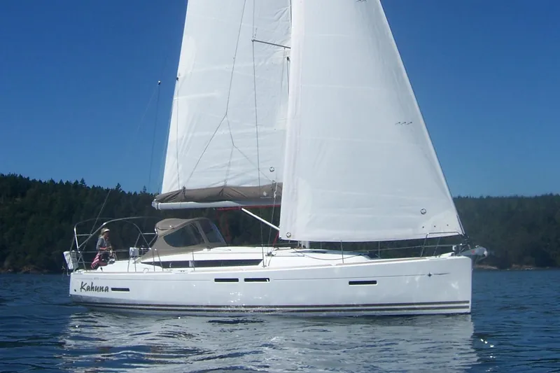 "Kahuna" is an extremely well maintained, well equipped Jeanneau 409. Ready to cruise or club race now! With a light and spacious open interior and large owner cabin forward, she is a lot of boat for a 40' vessel. The 2 Cabin 1 Head layout features a large owner's cabin forward with separate desk, extremely spacious main salon, large aft cabin to starboard, Nice L-galley with Corion counters and lots of cupboards, and spacious head to port with access to the giant 'garage' with plenty of storage for gear and sails.