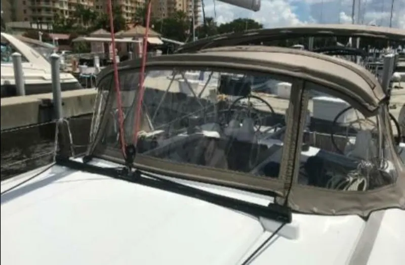Her twin helm stations have two large steering wheels and provide top-quality instrumentation including autopilot, boat speed, depth, wind speed and direction. Color cartographic GPS is also mounted in the cockpit.