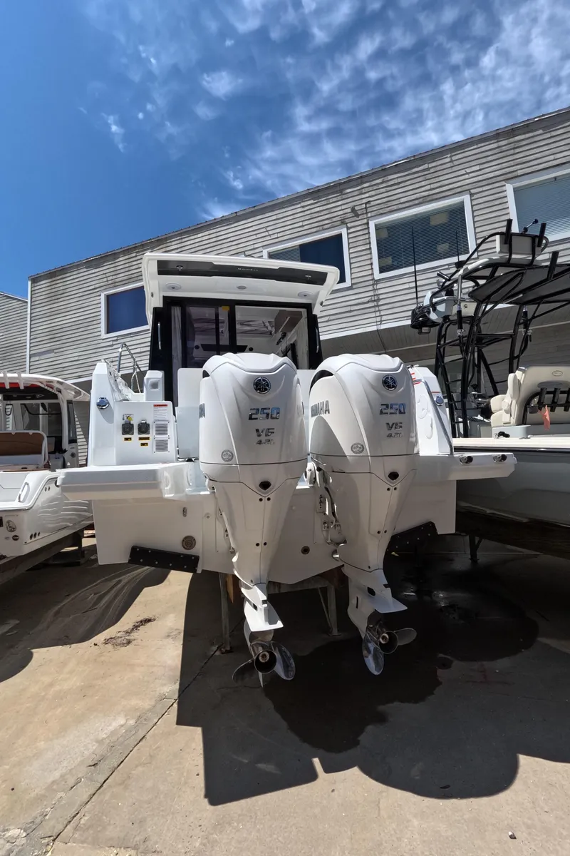 - Twin 250hp Yamaha engines in white